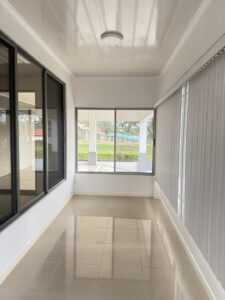 La casa está remodelada la grifería nueva y es automática, cuenta con alarma en toda la propiedad, los ventanales en toda la casa son corredizo, es una casa muy iluminada y ventilada, agua caliente en toda la casa