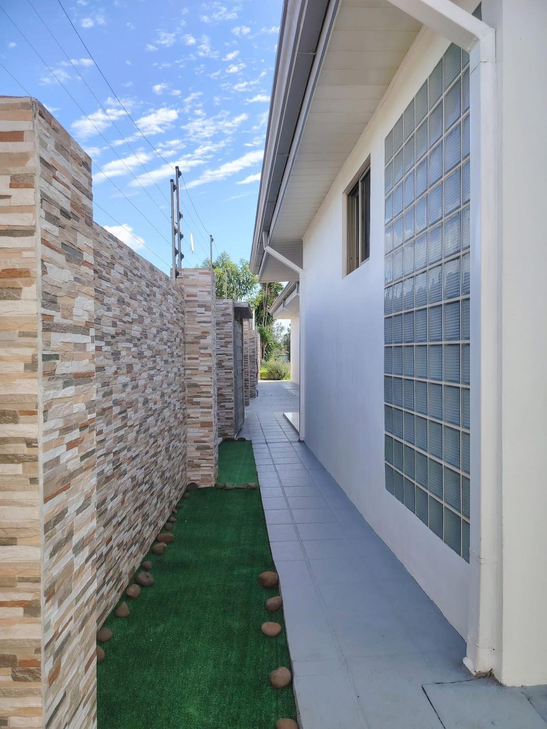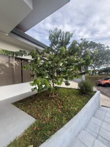 Cuarto de pilas Patio enchapado en fachaleta y zonas verdes laterales y al frente árboles frutales